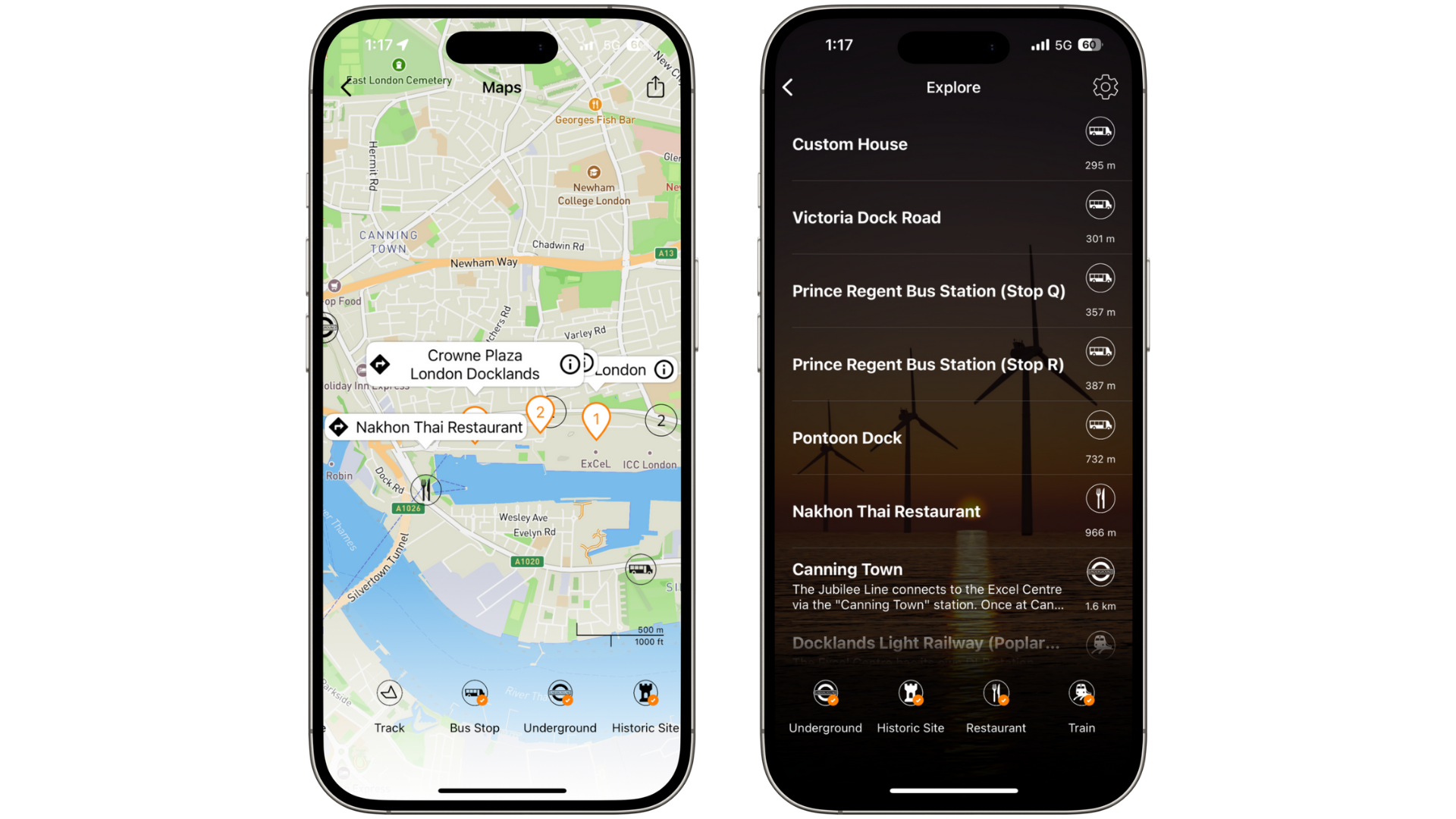 Single-day events: transport hubs (airports, metro, bus stops) and nearby dining.