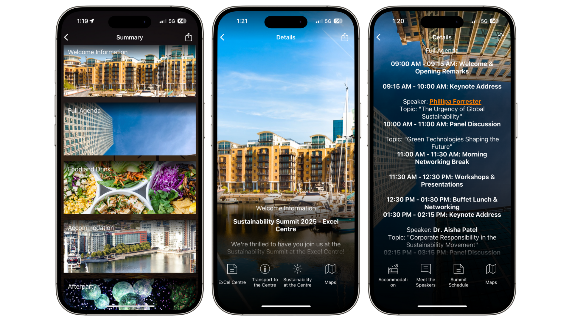 Use Destination Documents for event-specific details: schedule, speakers, tickets, guest list, sponsors, afterparty info.