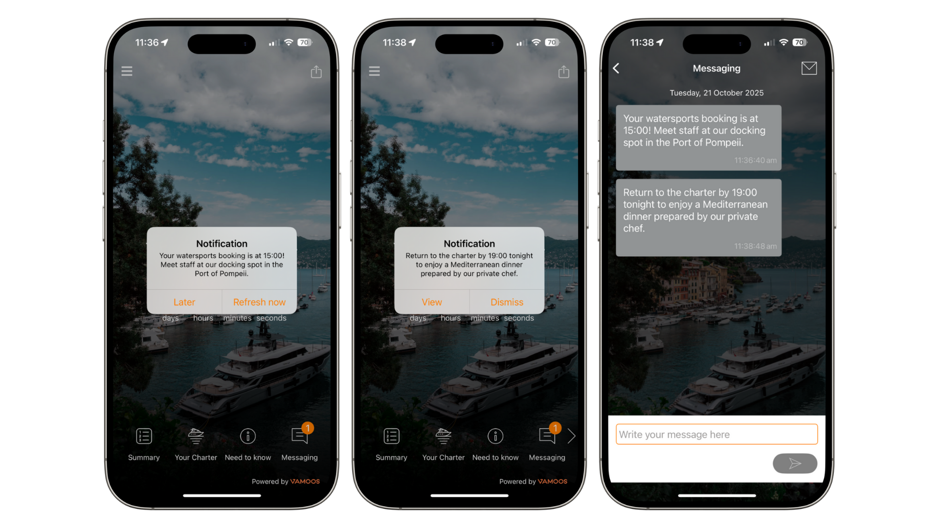 Use notifications to remind clients about bookings, excursions, and off-boat activities.