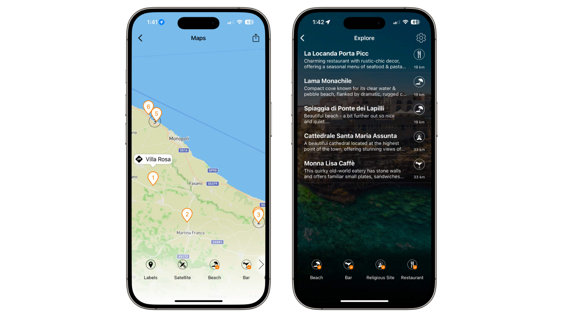 For smaller resorts, add nearby beaches, swimming spots, or practical stops like pharmacies and supermarkets.