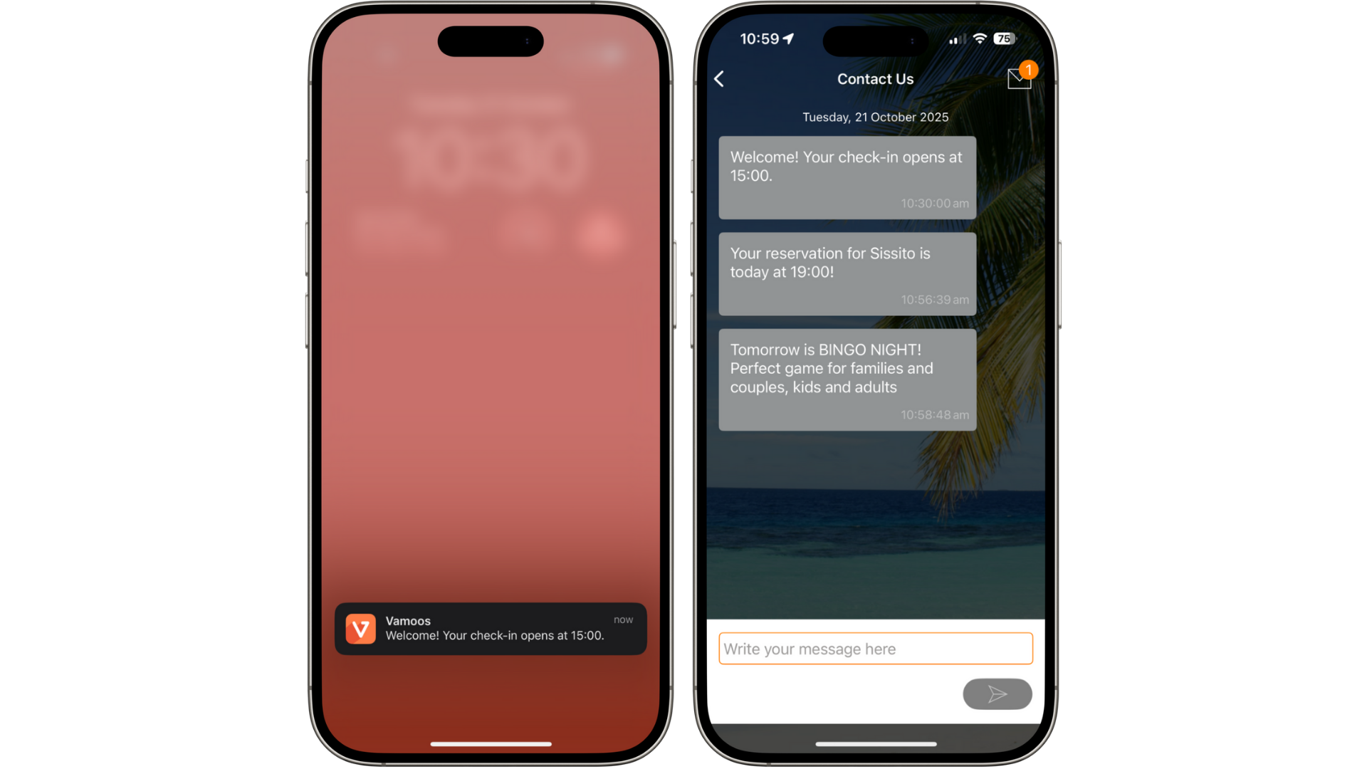 Send reminders for dining reservations, spa bookings, and activities. Attach menus, tickets, or booking links.