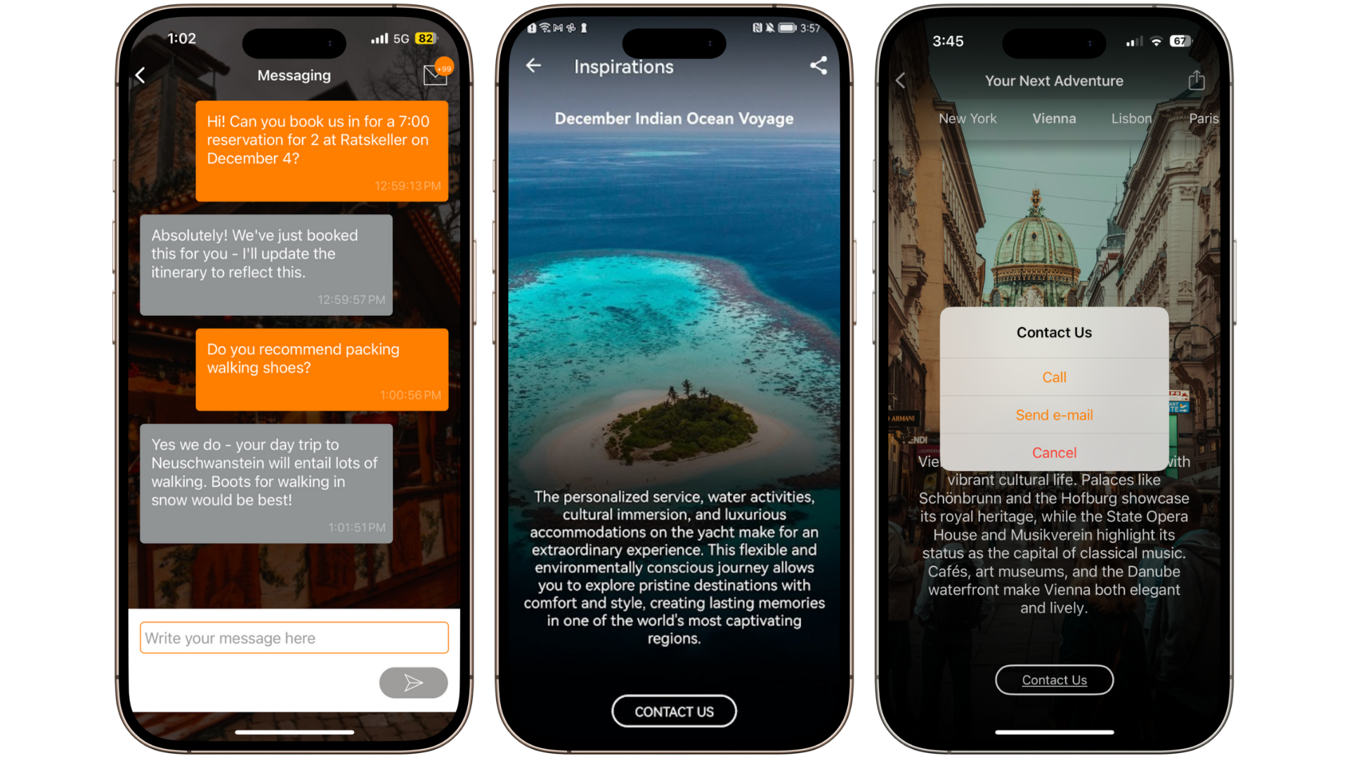Upsell in-resort services (watersports, spa treatments, private dining) using Inspirations’ instant contact button.