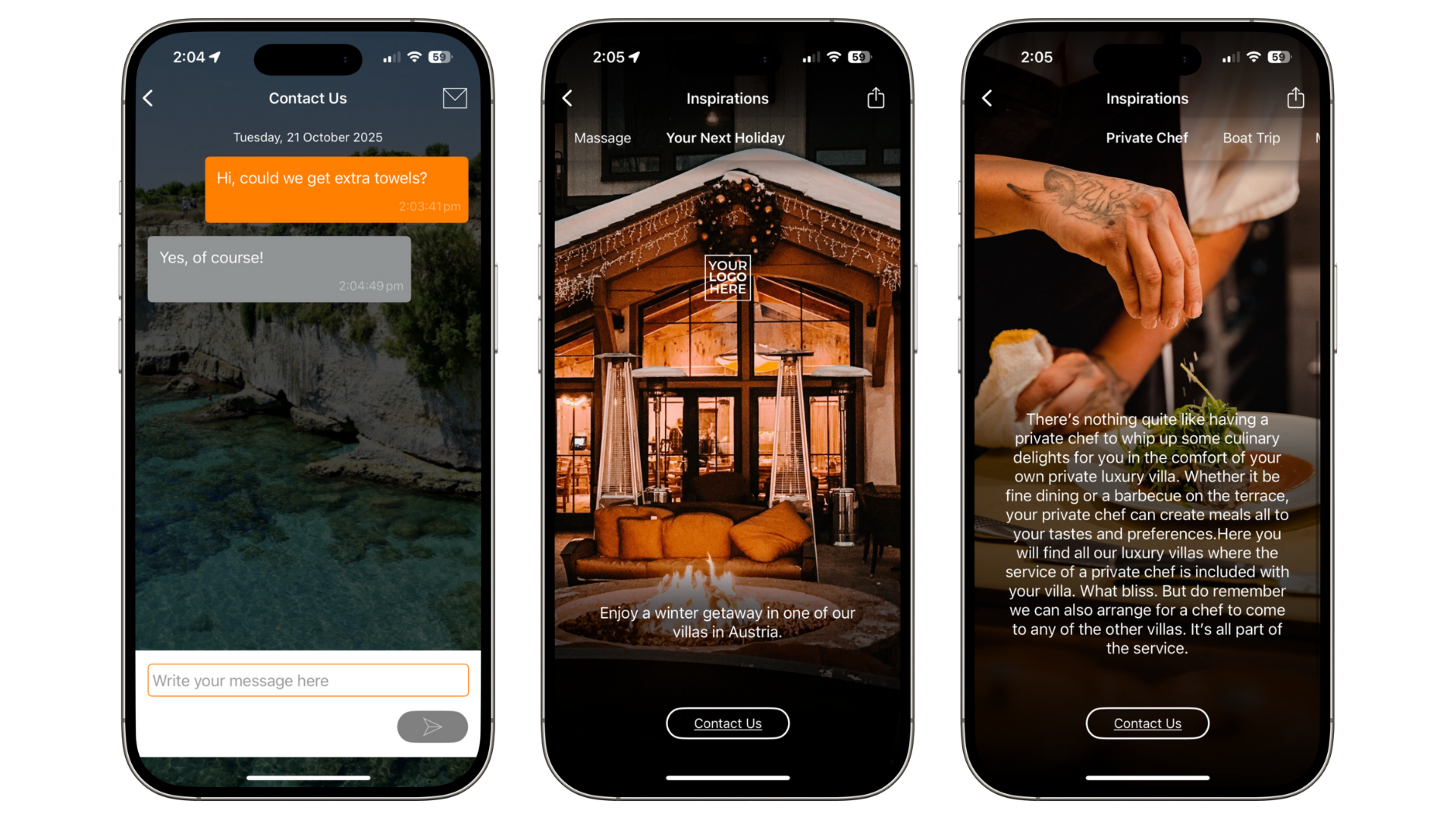 Upsell services like watersports, spa treatments, or private chefs using the instant contact button.