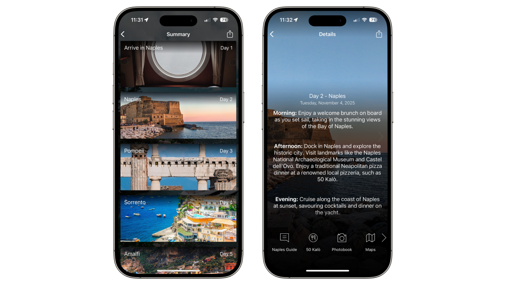 Day-to-day itinerary: Keep dates visible for experience-based trips.
