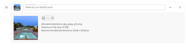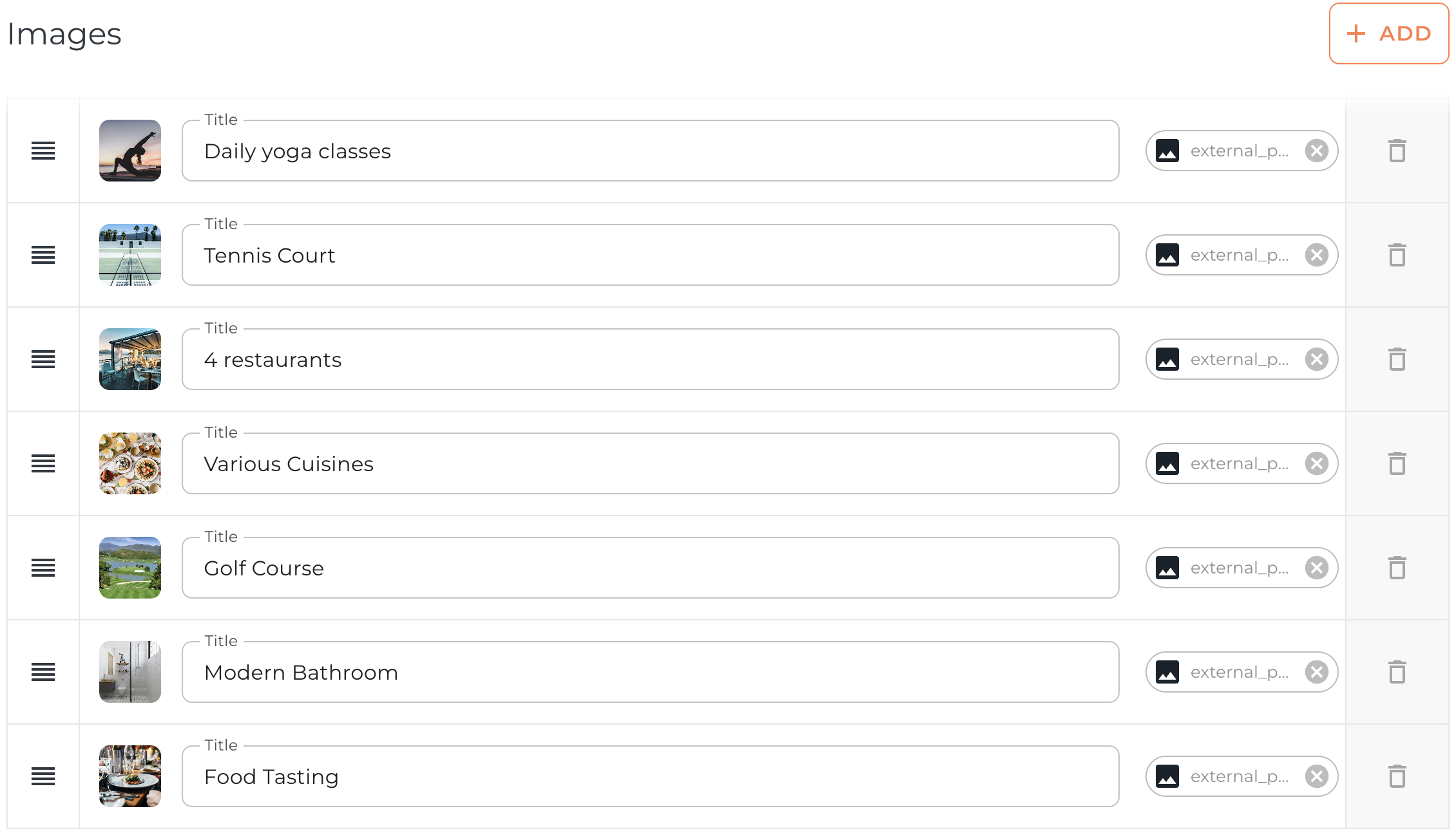 TOP TIP: Treat the gallery like a digital brochure. Sequence images as if a guest is arriving and exploring: entrance → lobby → rooms → dining → facilities → views, etc.