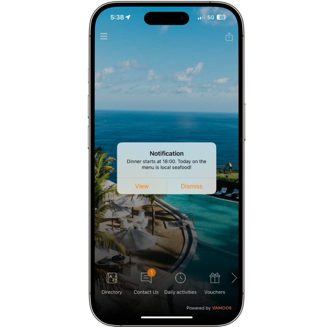 Vamoos Notifications let you communicate with guests before, during, and after their stay. They ensure your guests receive key information when they need it, while feeling supported at every stage.