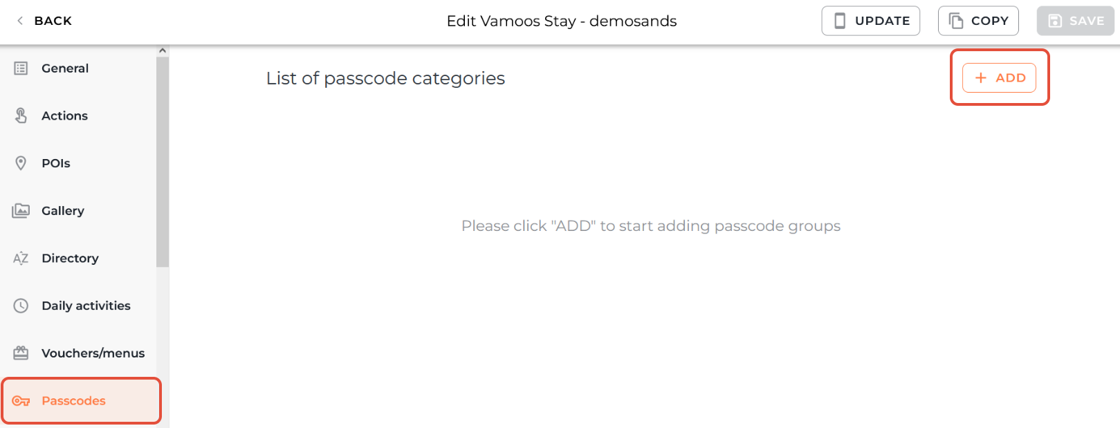 Create a tiered access level and limit access to certain areas of your Vamoos Stay with Passcodes