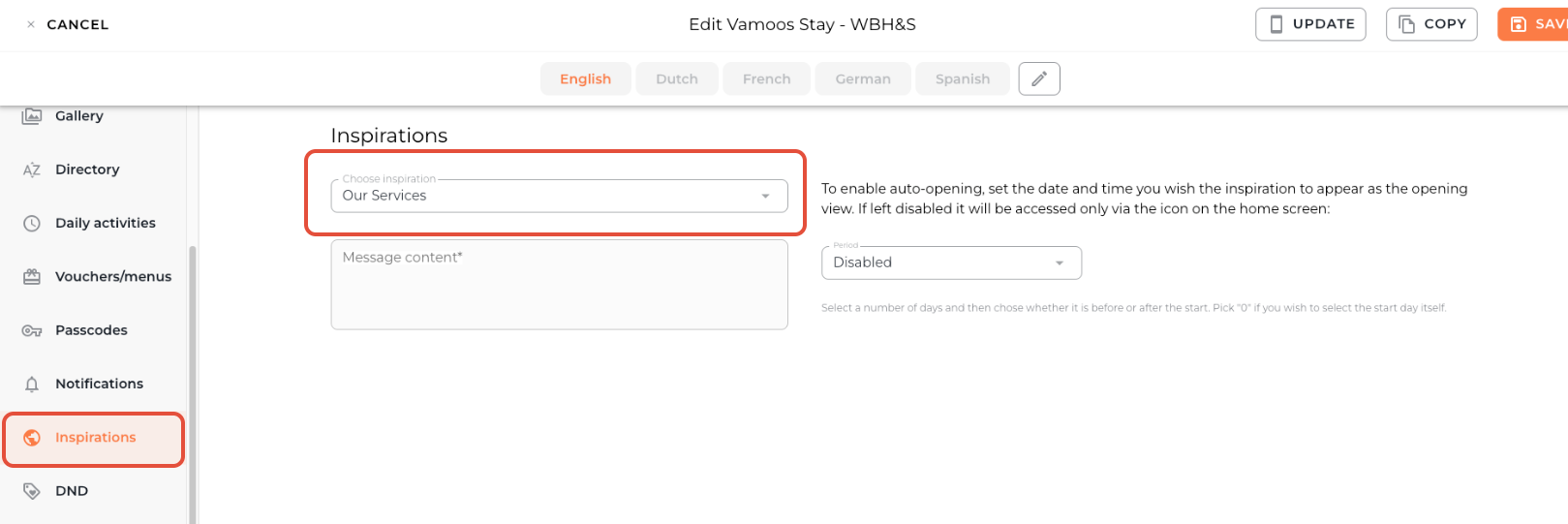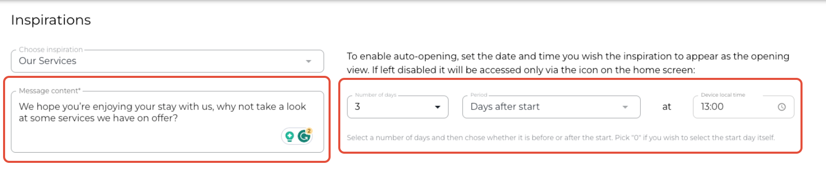 If left disabled, Inspirations will appear in the app but guests won’t be notified or prompted to open it.