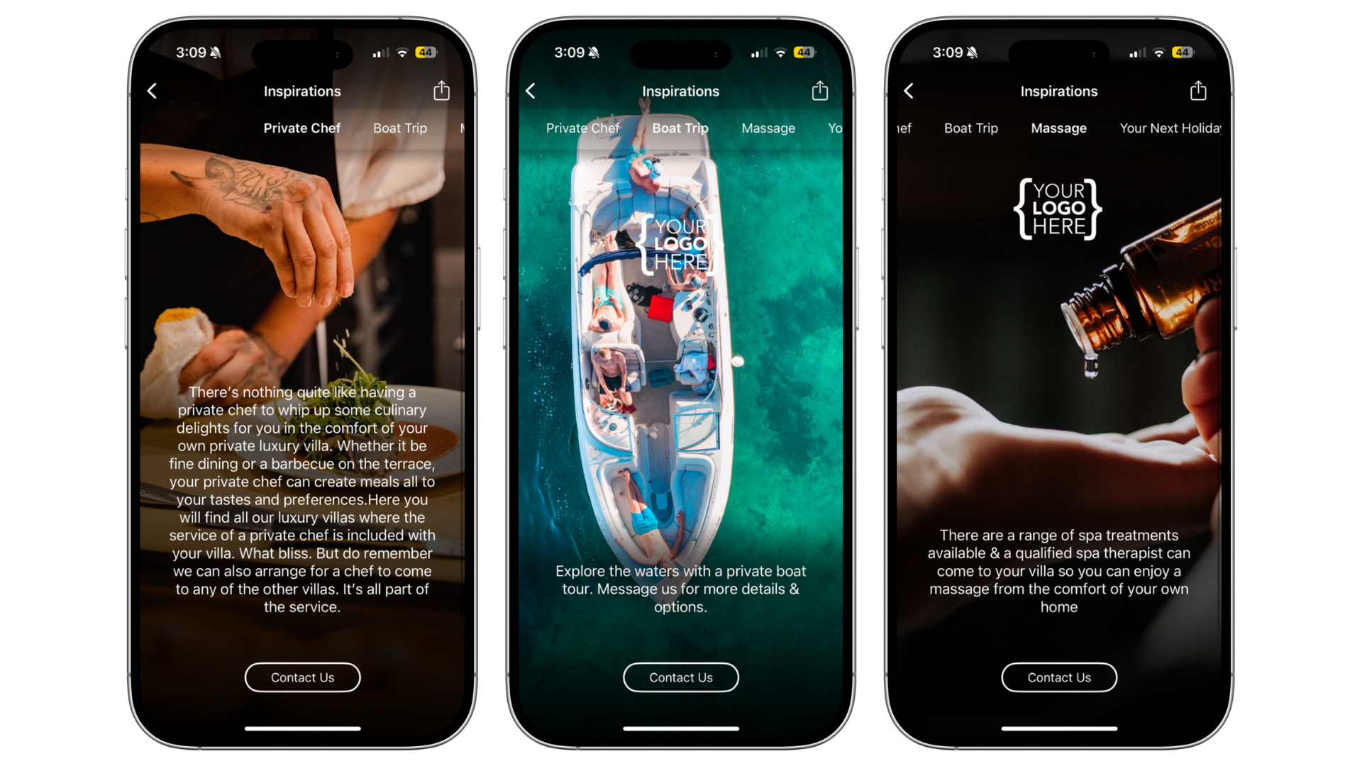 Use Inspirations as a digital brochure to promote offers or optional activities.