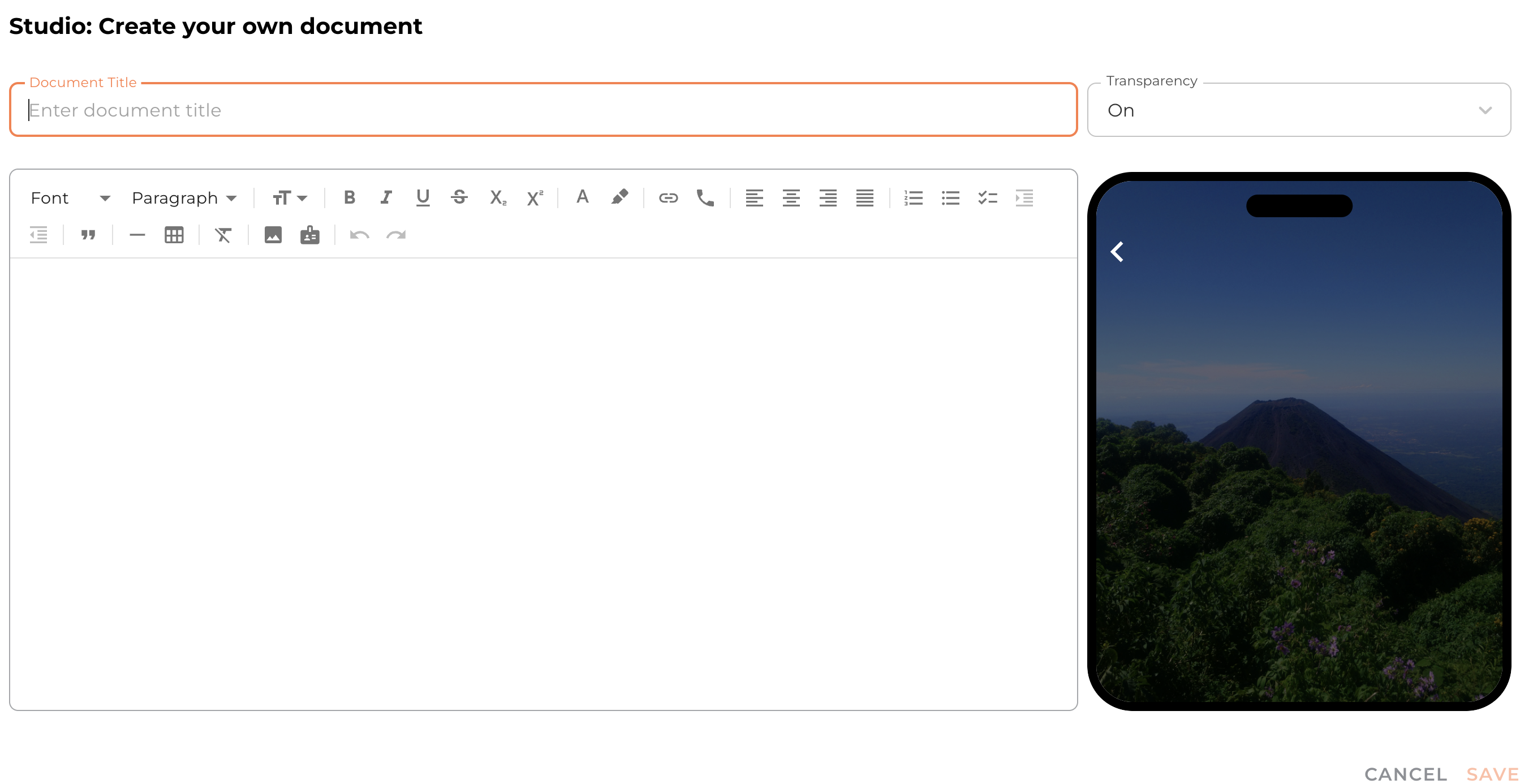 You can create Studio documents in the Storyboard by clicking Studio, create your document and SAVE.