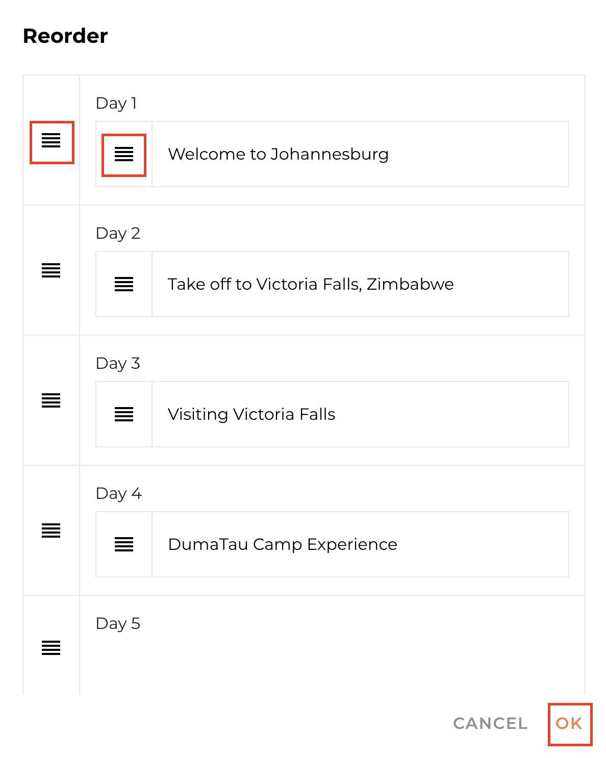 You are easily able to accommodate changes to the itinerary by dragging and dropping the Storyboard frames.