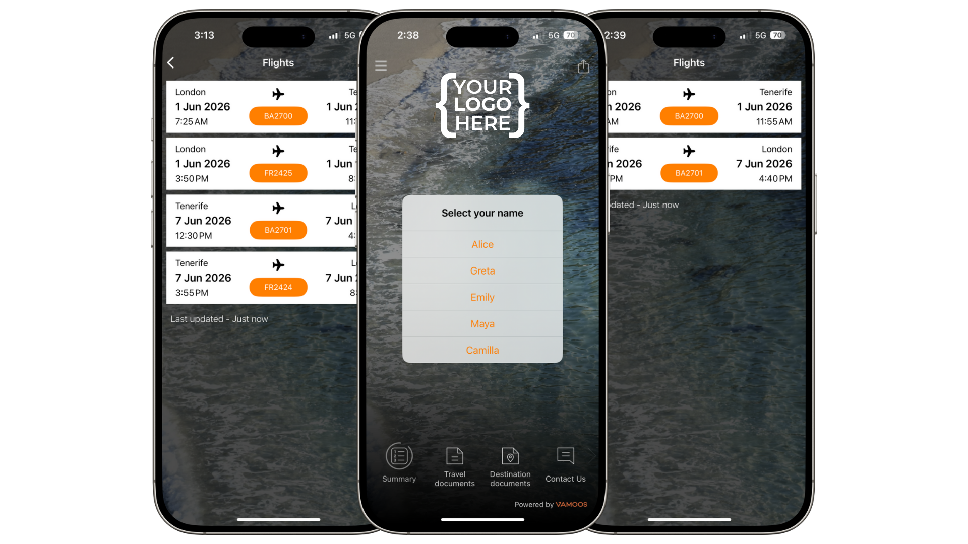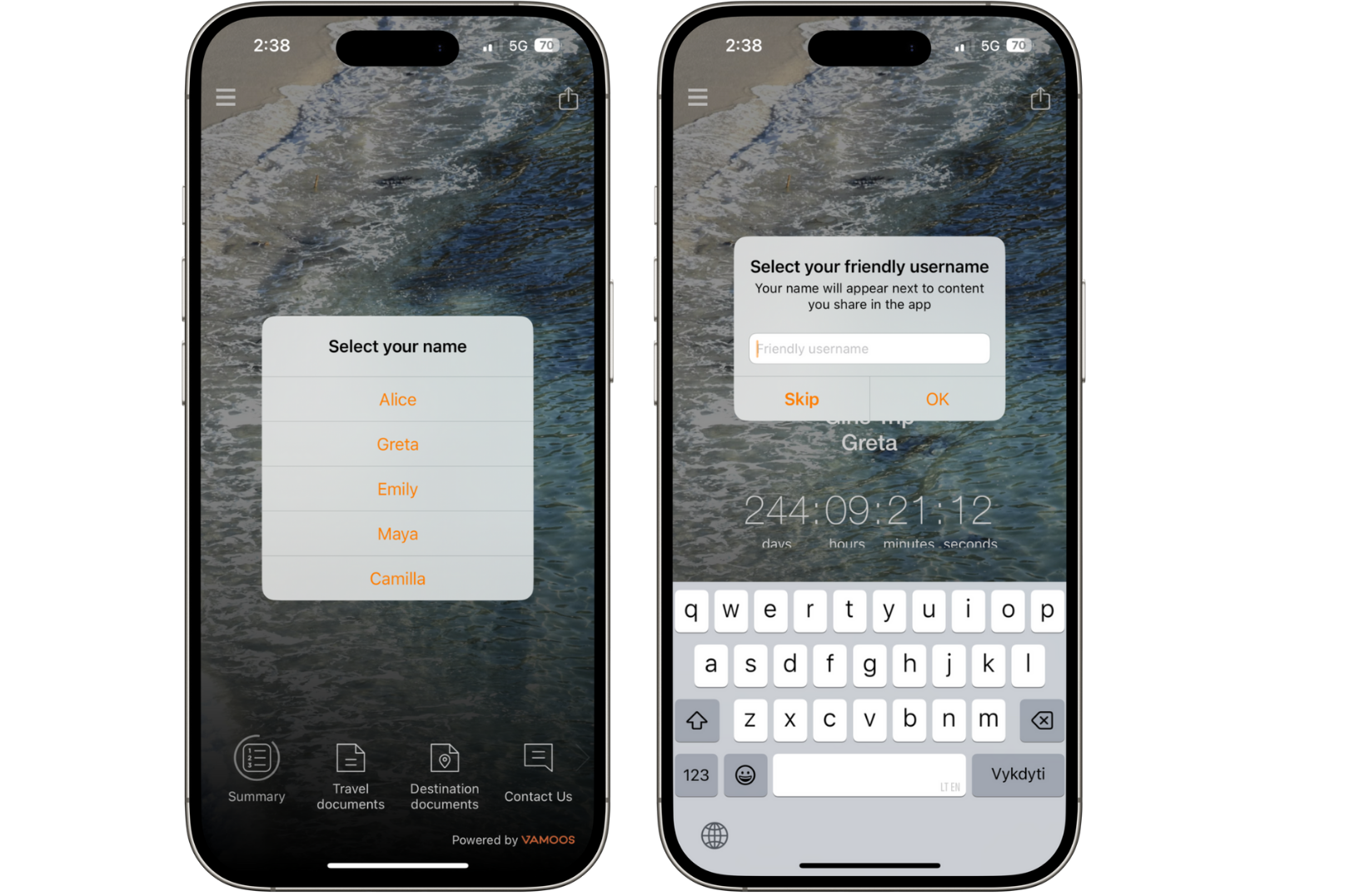 Add the names of all travellers in a group trip. When they log in, they select their name — creating a more personal experience and displaying their name on the home screen.