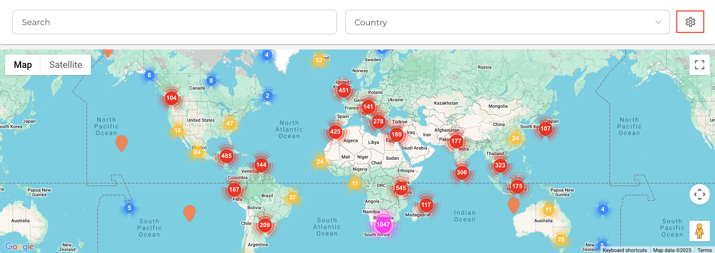 TOP TIP: If many properties are close together, they appear as a clustered number. Click the number to zoom in and see each property pin.