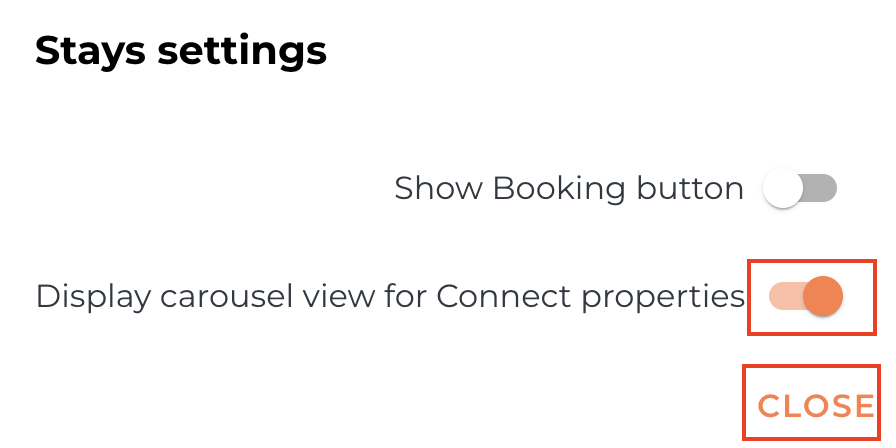 Toggle off the Display carousel view for Connect properties button and confirm by pressing CLOSE.