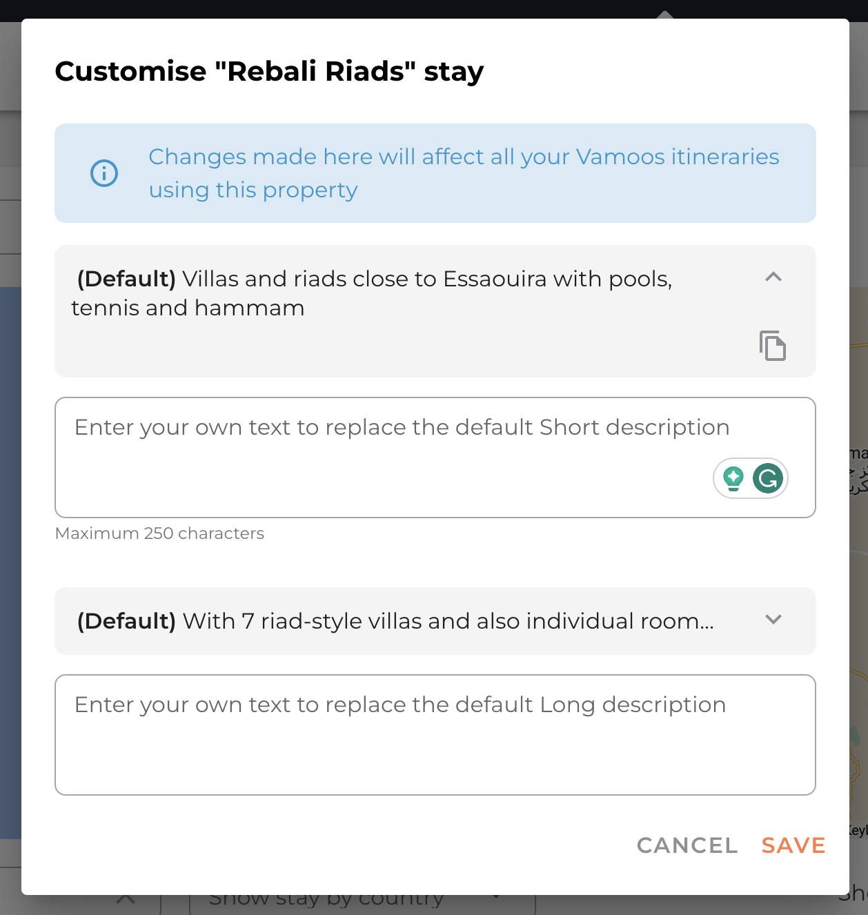 Click Edit to customise the long and short descriptions your clients will see.