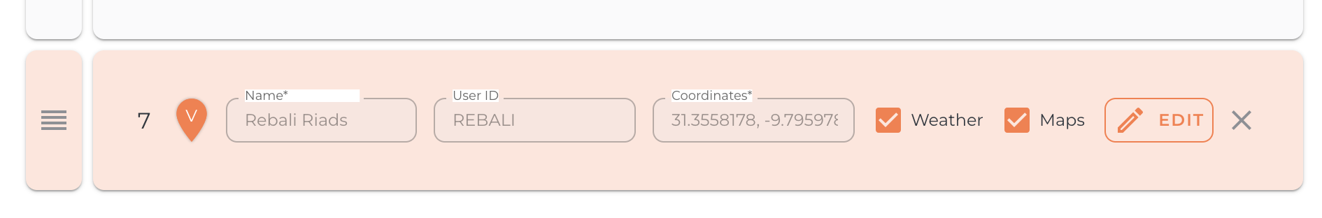 A:On the trip map they appear as orange pins with a “V”.