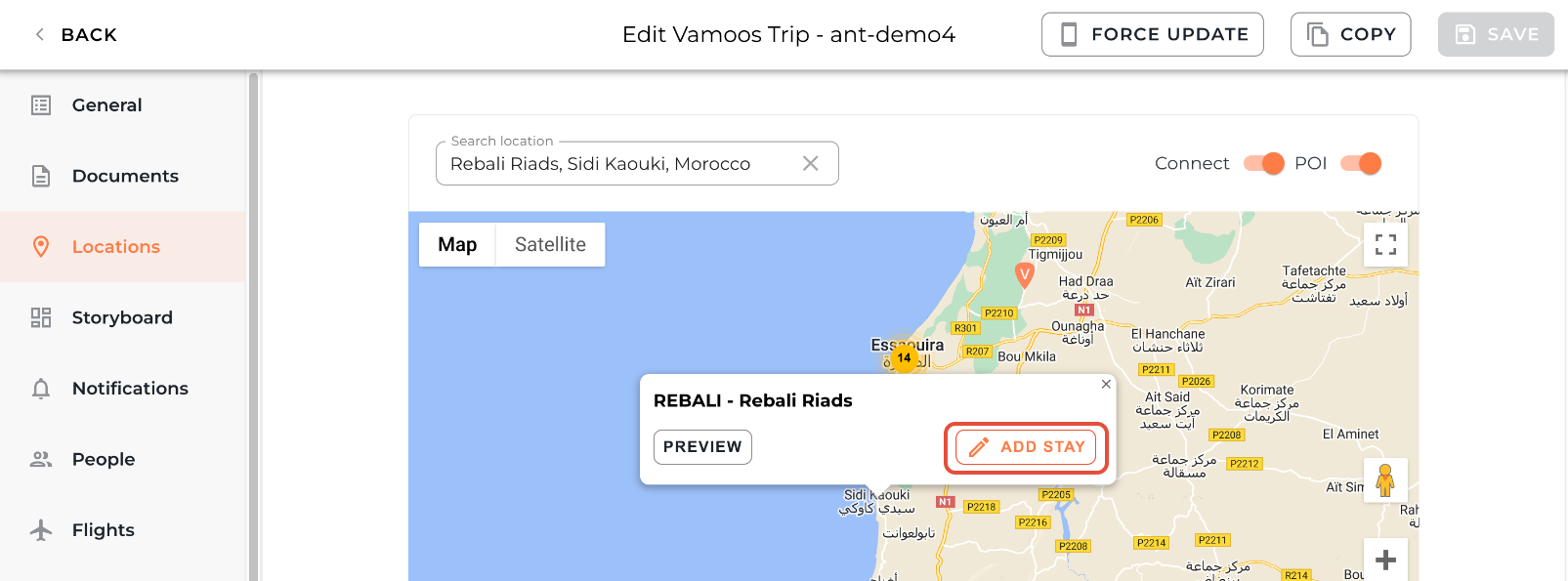 Adding a Vamoos Connect property to a trip