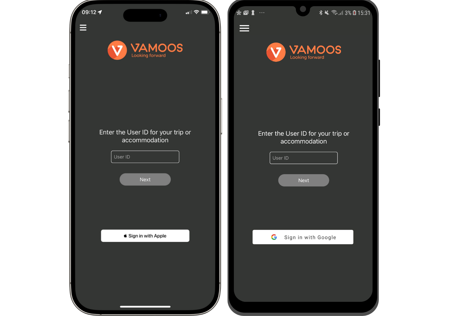 To access their trip information, travellers will log in with Apple or Google accounts (must be the same email entered in the Vamoos Portal) and their trip with all the information will be downloaded.