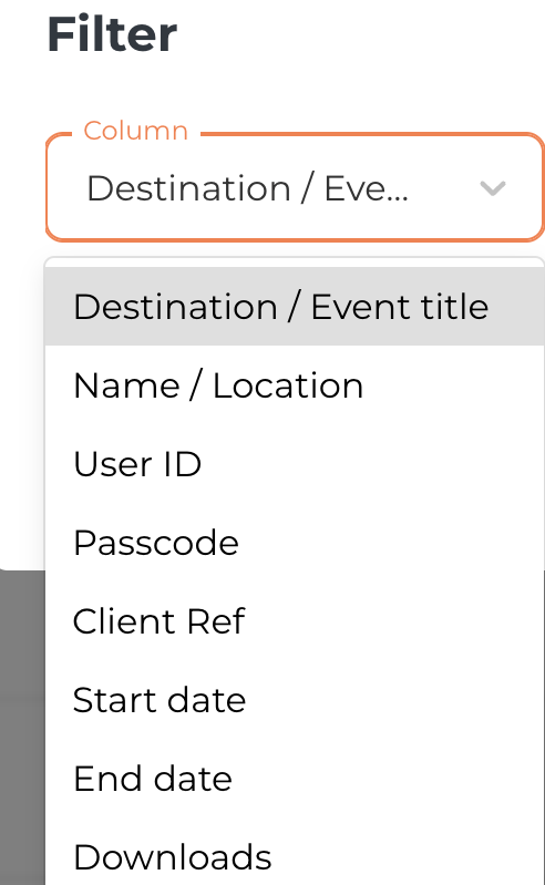 NOTE: This filter works off the Destination / Event Title field, not the Location field.