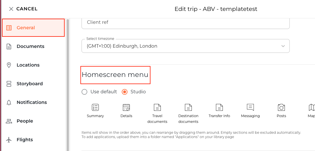 Please note: Having the Studio option selected in your Settings will apply across trips that have the Studio option selected within your trips. Trip-specific layouts can also be customised further for individual trips.