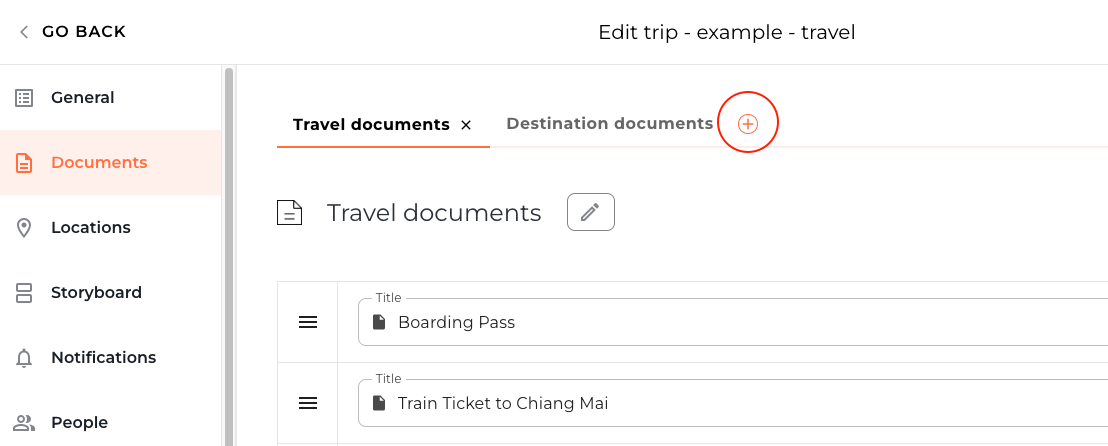 Here, you can either upload an Application under your existing Travel/Destination documents or upload it under a new Document Section to have it display as its own homescreen icon.