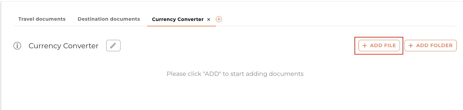 Select your existing Travel Documents or Destination Documents and click the +ADD File button.