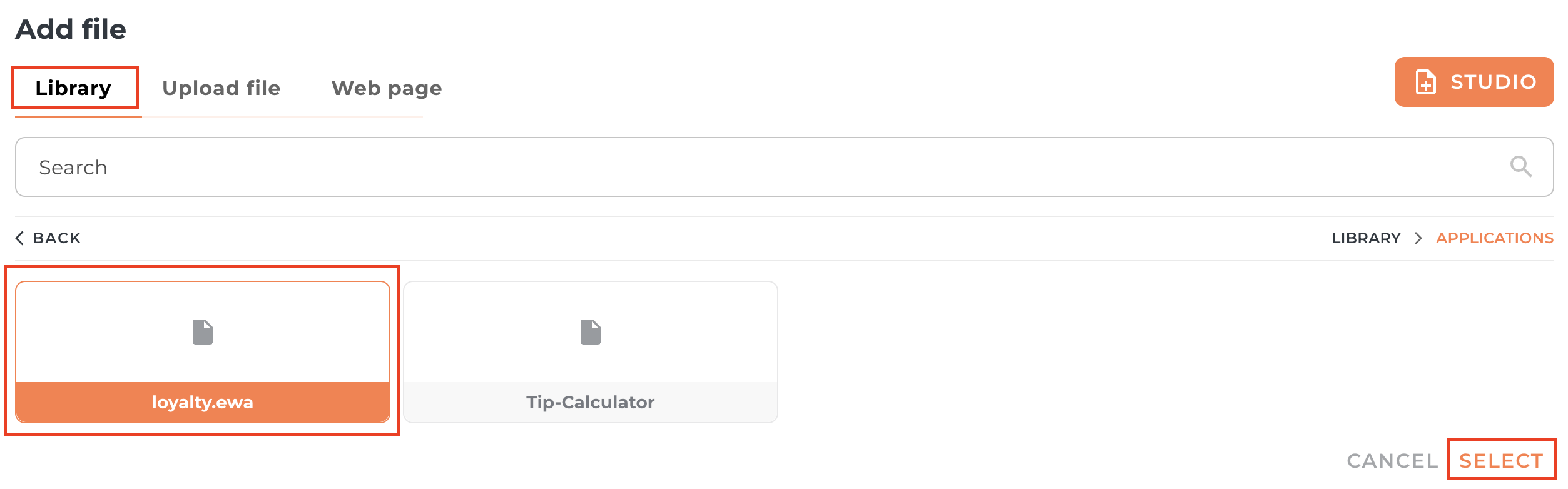 Option 2: Upload an application to a new section to display as a standalone homescreen icon
